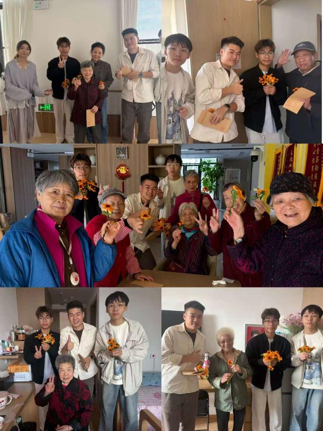 镜头下,有小伙伴帮老人整理衣领的细心,有老人握着鲜花比耶的可爱,有围坐在一起唠家常的温馨,还有大手牵小手的温暖画面。每一张照片,都记录着不期而遇的美好,也见证着爱心的传递—我们用陪伴治愈孤独,老人们用岁月的智慧温暖我们。